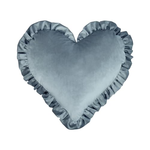 ARTIS Sofakissen Herz mit Rüsche – Weicher Samtstoff – Moderne Designs und Farben – Couchkissen – Kissen mit Bezug ohne Reißverschluss – Kopfkissen mit Rüsche